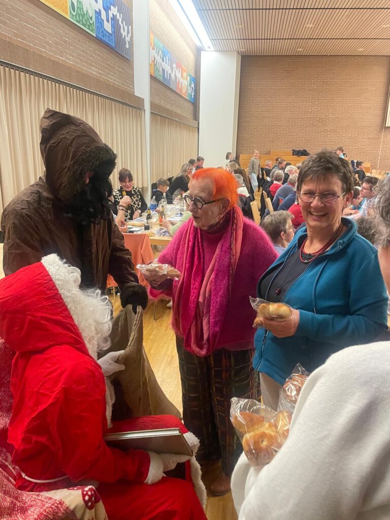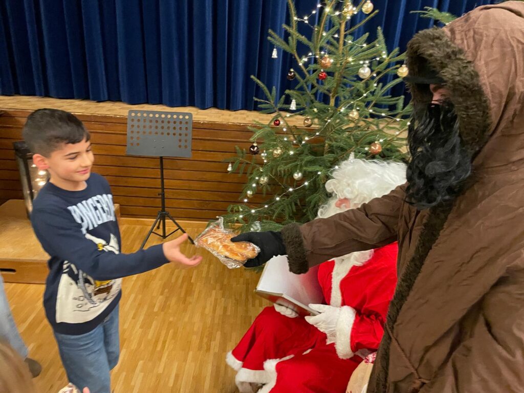 Während die Besucher Raclette und eine köstliche Kürbiscremesuppe von Markus Scherrer geniessen durften, waren auch Samichlaus und Schmutzli nicht zu Schade, den Weg vom Hohrain in die Sproochbrugg aufzunehmen, um sich die langen und meist gutmütigen Sprüchli der jüngsten unter uns anzuhören und Grittibenzen als Belohnung zu verteilen.
