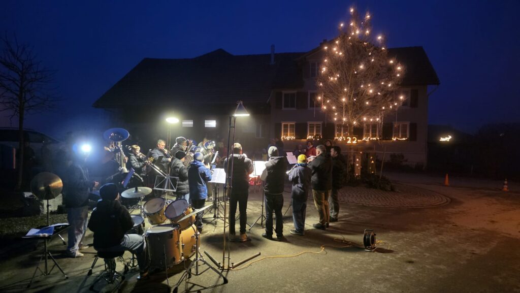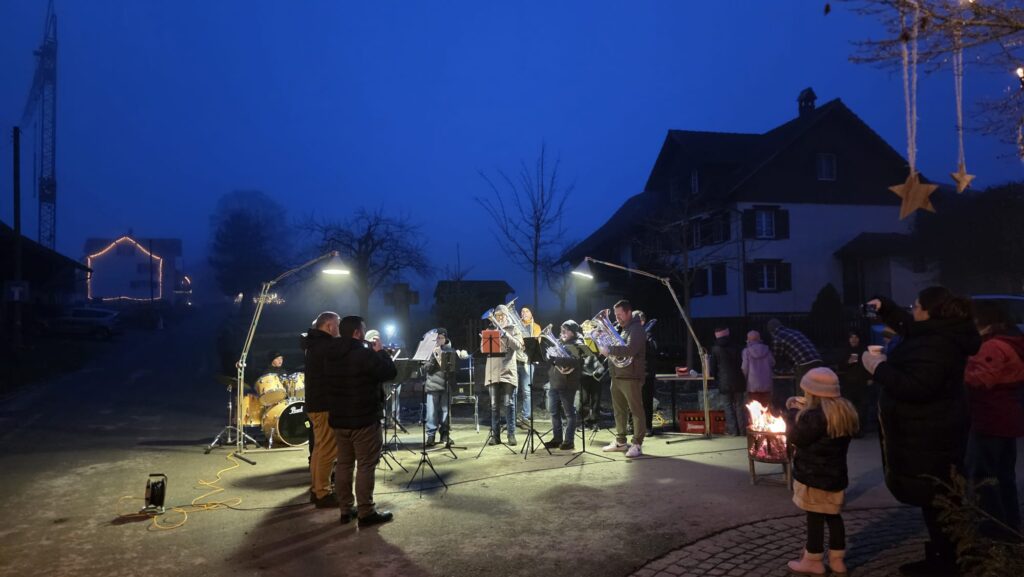 Der Einladung der Dietenwiler und Dietenwilerinnen, das Weihnachtsfenster am 22. Dezember musikalisch zu umrahmen folgten wir gerne. Leider ohne Schnee, dafür mit umso mehr Gemütlichkeit, Punsch, Glühwein, selbstgebackenem Speckbrot von Regula und vielen anderen Köstlichkeiten kam eine wunderbare vorweihnachtliche Stimmung auf. Bilder: